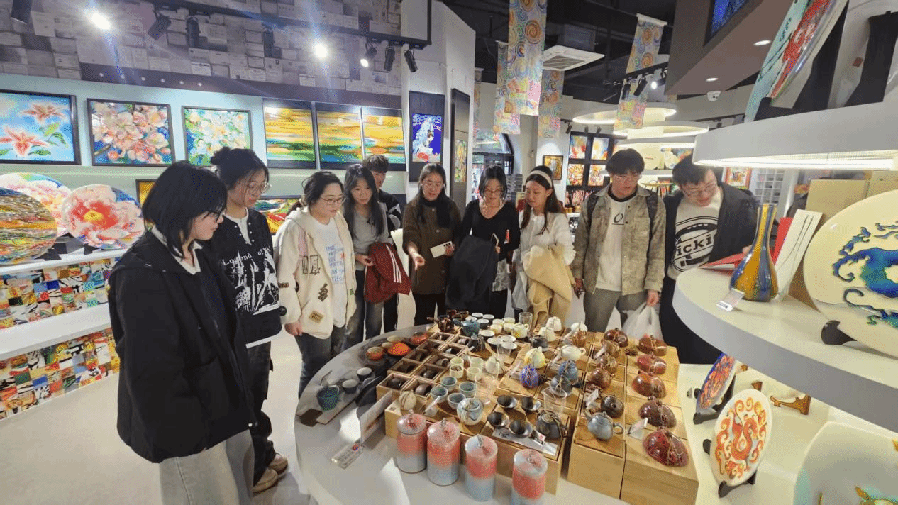 随后,同学们来到洛阳三彩艺术博物馆参观学习。在这里,同学们近距离欣赏了精美的唐三彩作品,了解了三彩艺术的历史渊源、制作工艺和文化内涵,馆内制作精良的现代三彩文创产品也让同学们深刻感受到传统与现代的完美融合,为同学们提供了丰富的文化创意灵感。