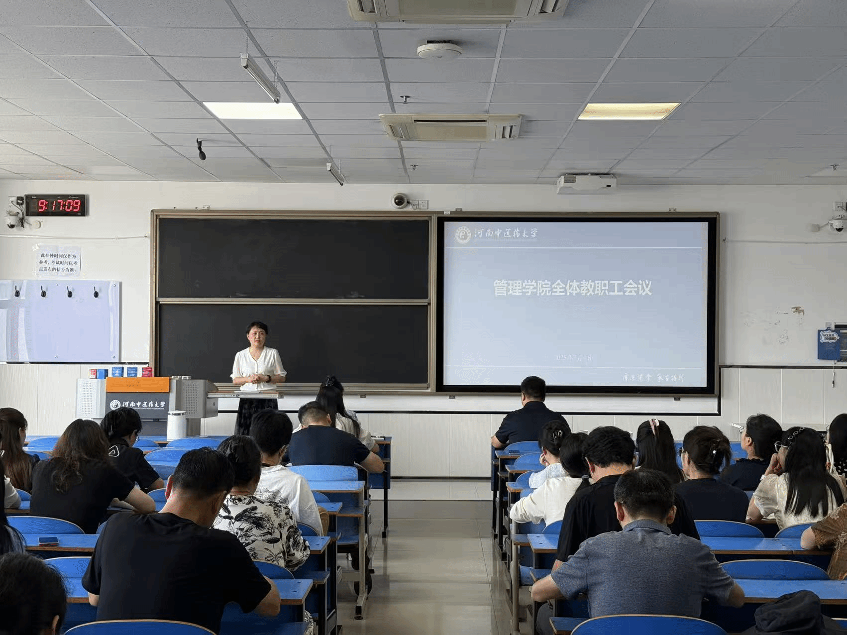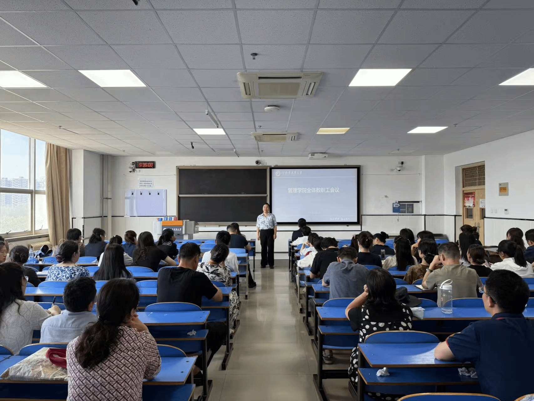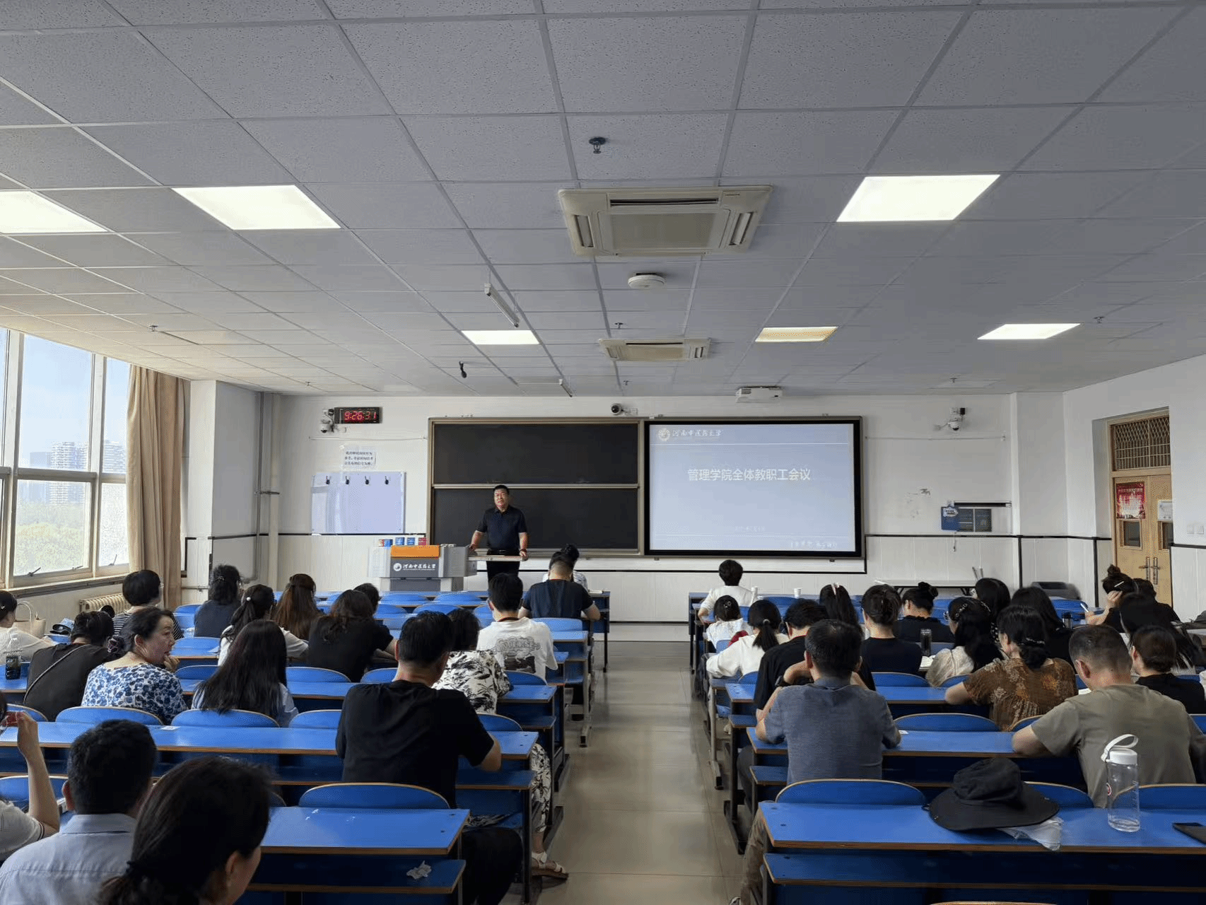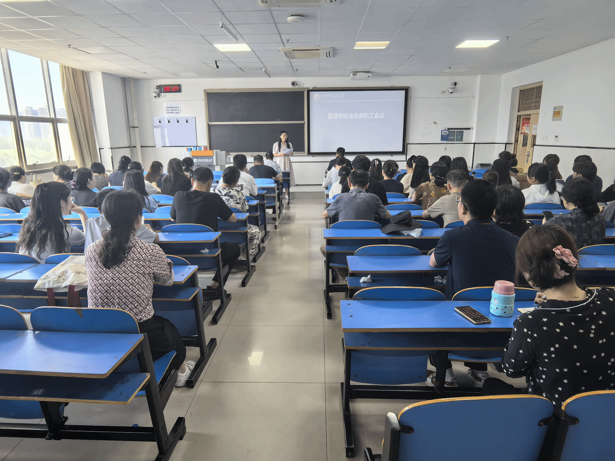 会议伊始,副院长潘玲对教学工作进行系统回顾,全面总结上半年教学工作中的重点与亮点,对课件标准化建设与暑期教学工作作出详细部署。同时对上半年工会工作进行汇报,生动展现了工会组织在丰富教职工文化生活、增强团队凝聚力方面的系列特色举措,充分彰显了学院对教职工精神需求与文化生活的关怀。