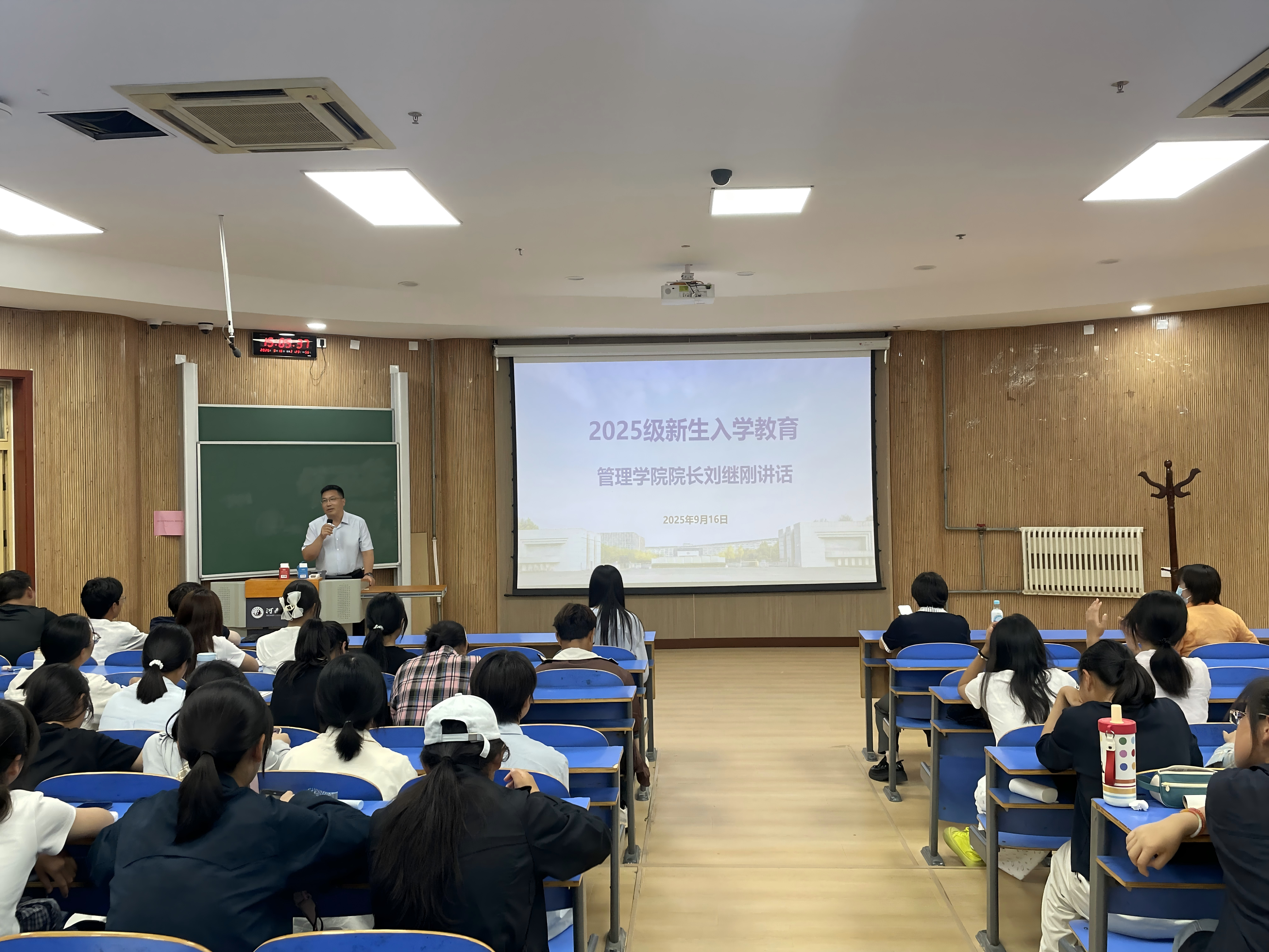 刘继刚院长围绕新生成长关键议题,引导同学们完成学习模式转变;鼓励学生学会有效沟通,在实践中积累经验、锤炼能力;同时叮嘱同学们始终关注身心健康,脚踏实地走好大学每一步,不负青春韶华。
