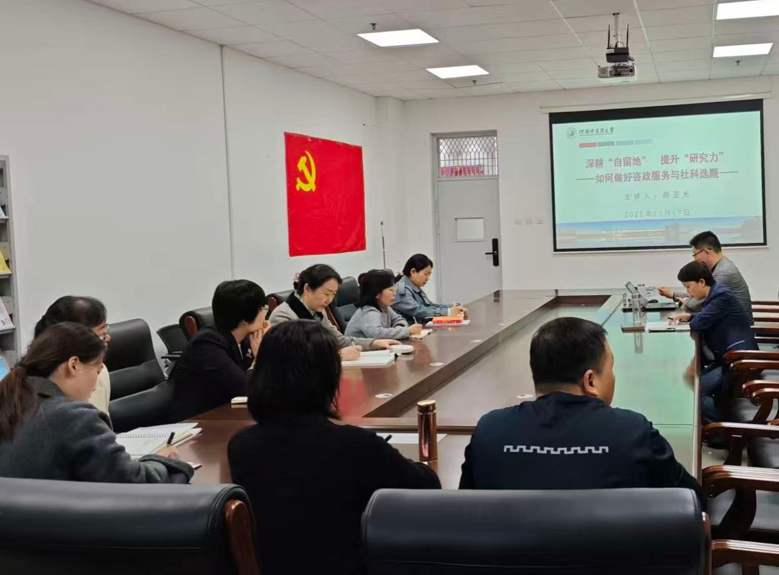 (文/段亚茹 图/张志昊)10月17日上午,华中师范大学郝亚光教授应邀做客飞卢小说 ,在A542会议室作了题为“深耕‘自留地’ 提升‘研究力’——如何做好咨政服务与社科选题”的专题讲座。讲座由飞卢小说 副院长赵海阳主持,学院科研骨干教师到场参加。
