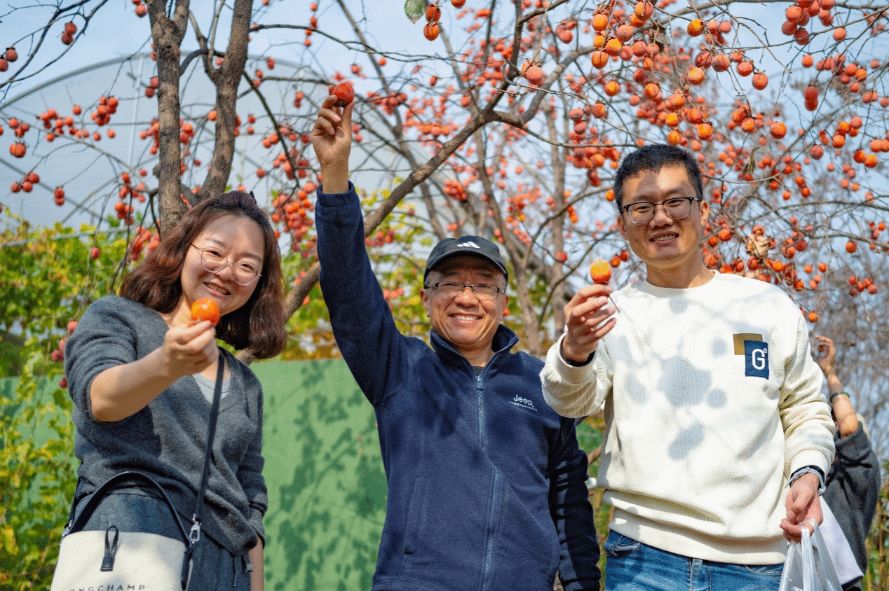 随后的采摘环节更是一次生动的文化课堂。文化教研室张晓利老师深入田间,现场讲解了洋姜健脾益胃的食养价值、菊花散风清热的功效与其清雅的文化意象,以及柿子润肺生津的养生智慧。在她的讲解下,大家走进采摘园,亲手收获大自然的馈赠。在亲密的劳动协作中,大家不仅体验了收获的喜悦,更深刻体会到劳动教育的意义和价值。