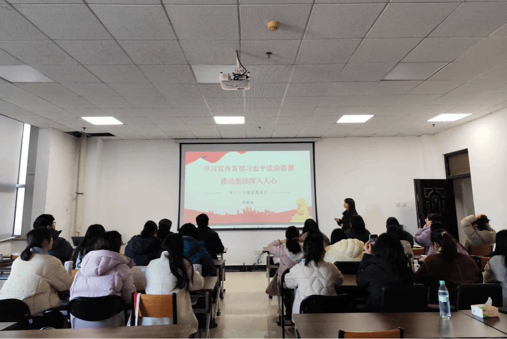 法学博士吴晓旭老师以《学习宣传贯彻习近平法治思想推动宪法深入人心》为题,系统阐述了宪法的根本法地位与其作为治国安邦总章程的重要意义,并结合公共管理专业特点,将宪法条文与基层治理、公共服务等实践场景紧密联系,通过生动案例深入剖析宪法在社会治理中的实际应用。她勉励同学们坚定法治信仰,自觉将宪法精神融入未来公共管理实践,切实增强履职尽责的使命感与行动力。