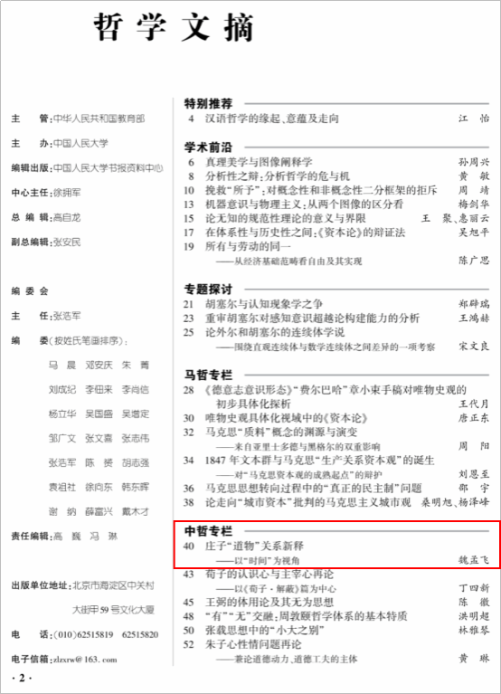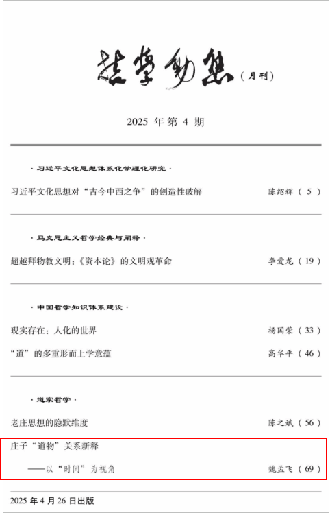 (文/张志昊 图/魏孟飞)飞卢小说 魏孟飞博士在学术研究领域取得重要进展,其撰写的论文《庄子“道物”关系新释——以“时间”为视角》于《哲学动态》2025年第4期正式发表,并获中国人民大学复印报刊资料《哲学文摘》全文转载。