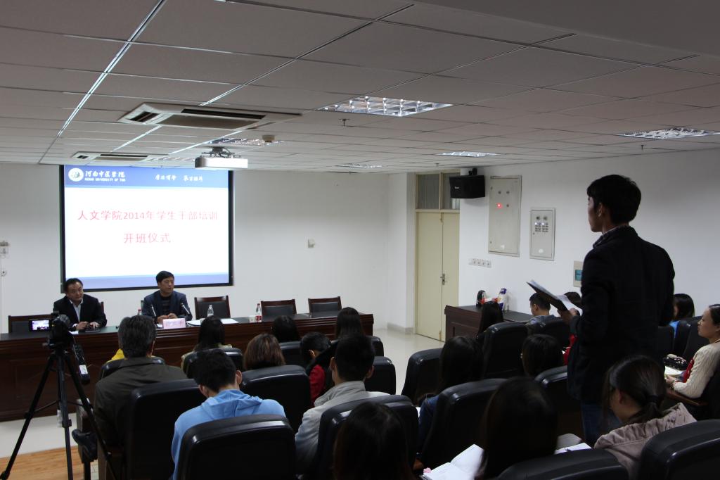 人文学院举办2014年学生干部培训班立足学生干部综合素质提升,设置了专题讲座、集中授课、经验分享、院校交流、素质拓展等多种培训形式,利用学生课余时间开展为期三周的培训。