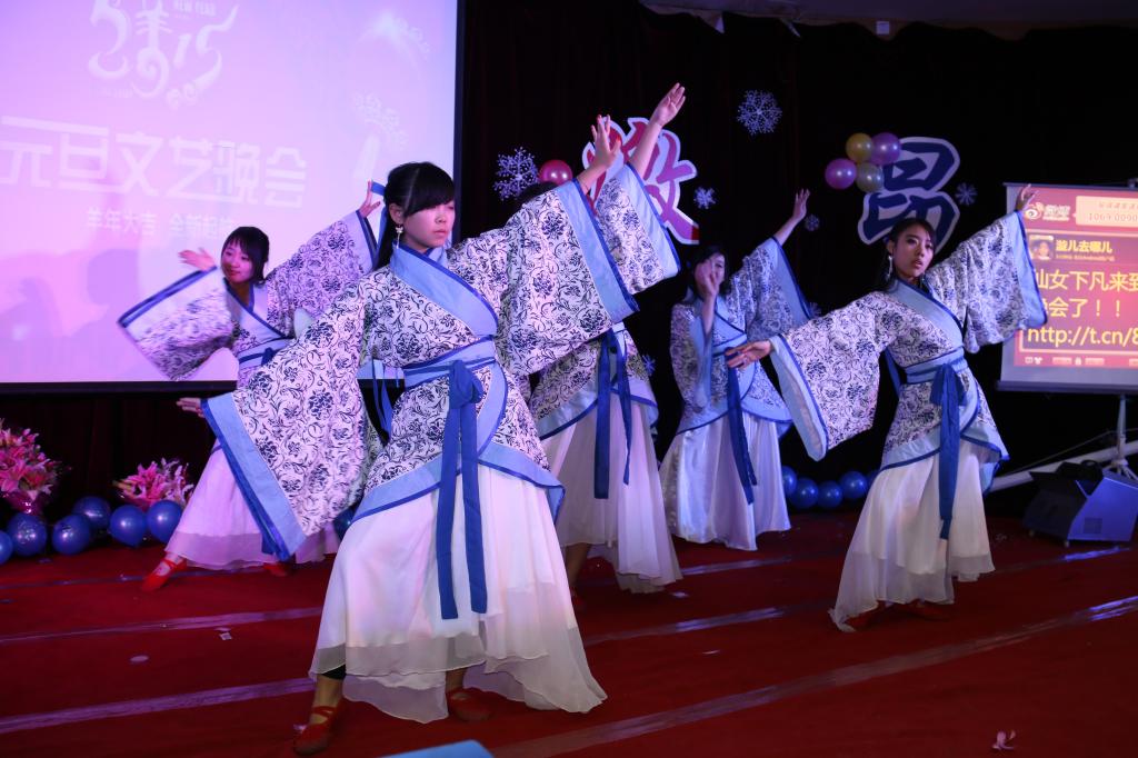 首先,人文党委书记王剑锋和院长张丽青为2015元旦晚会致辞。向全院师生带来了新年的美好祝福,对全体师生在2014年所做的工作与努力表示衷心的感谢。希望全校师生能够携手奋进,用智慧和汗水开创我院更加美好的未来。随后,晚会现场灯影交错旋转,乐曲热闹非凡,文艺节目高潮迭起,精彩不断。一场激情四射的舞蹈《Big girl now》拉开了晚会的序幕。幽默诙谐的相声《我要穿越》、另类的西游记小品《情系女儿国》、大一新生自导自演的小品《中国好学生》都令在场的观众捧腹大笑,精彩至极;极具复古特色的古筝表演《三寸天堂》,高山流水,细水长流;身姿柔美,体态妙曼,民舞《青花瓷》和《秦风汉韵》,旋转摇摆之间流露出舞者的优雅灵动,为晚会掀起了一场典雅如梦的“中国风”;同时极具现代气息的街舞《danger》、《起舞》跳出了青春色彩,跳出了专属于他们的靓丽风姿,现场欢呼声喝彩声不绝如缕。人文学院辅导员表演的《与青春共舞》舞出了一首动人心弦的青春赞歌,鼓舞青年青春不息,奋斗不止,将晚会的气氛推向了高潮。晚会现场当然也少不了风格各异的歌曲,《月半小夜曲》、《你是我心中的一首歌》、《光阴的故事》、《等待》等等轮番上场,或轻快悠扬, 或浪漫温馨、或慷慨激昂,给在场的观众带来了听觉上的冲击和享受。最令人耳目一新的就是校艺术团模特部为我们带来的模特走秀《穿越时空的爱恋》,让观众享受了一场视觉盛宴。“你是谁,为了谁,我的战友你何时归”,特邀嘉宾“感动校园”十大人物孙永强教授一开嗓便技惊四座,以其清亮、高亢的嗓音征服了现场观众;学生会带来的舞蹈《拜新年》活泼俏皮,再次将晚会推向高潮。近三个小时的演出精彩纷呈,高潮迭起,赢得了现场观众的热烈掌声。最后,晚会在大合唱《相亲相爱》歌声中完美落下帷幕。