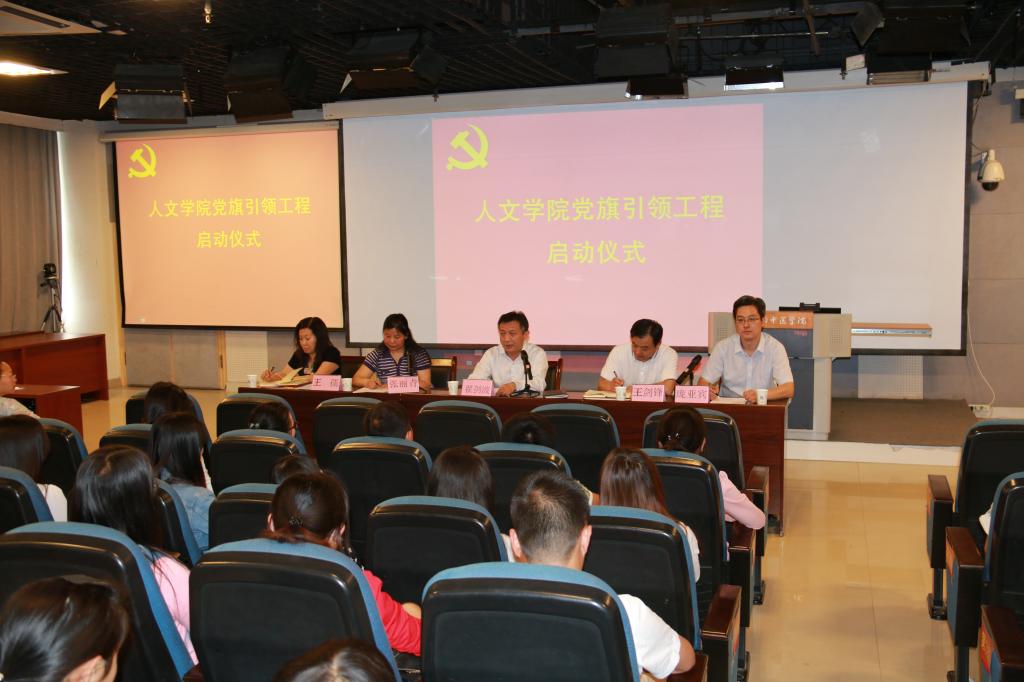 为贯彻落实学校党委《关于开展基层党建工作创建活动的通知》(院党字〔2015〕14号)精神,切实创新基层党建工作,5月14日下午4点,人文学院“党旗引领工程”启动仪式在教学实验大楼A634会议室举行。我校党校副校长、组织部副部长、人事处副处长翟剑波出席会议并作了讲话,人文学院领导班子全体成员、教师党员代表、学生党员和积极分子代表共200余人参加了会议。启动仪式由人文学院党委副书记、院长张丽青主持。