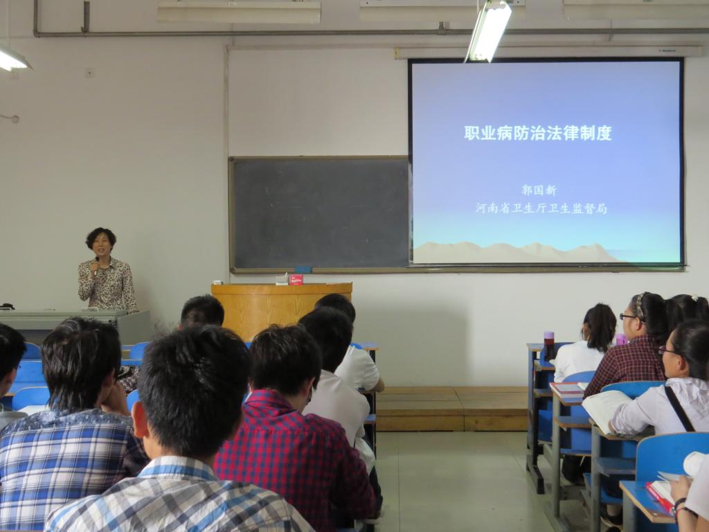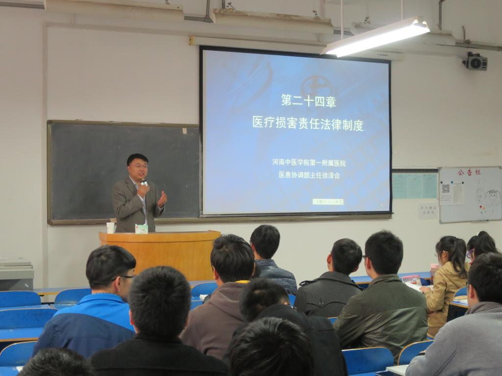 近日,人文学院分别邀请河南省卫生厅卫生监督局职业卫生监督科郭国新科长、河南中医学院第一附属医院医患协调部徐泽合主任走进课堂为学生授课,受到学生好评。