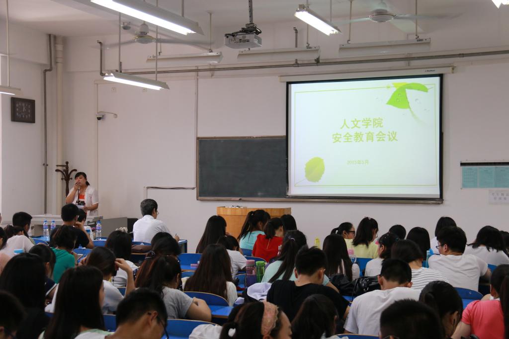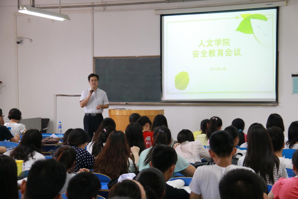 为进一步提高大学生安全意识,促进平安和谐校园建设,2015年5月28日中午1:00,人文学院在教学实验大楼A区529教室召开安全教育专题会议。人文学院党委副书记庞亚宾、全体辅导员及各班班长、安全委员、纪律委员、宿舍长代表等120余人参加了此次会议。