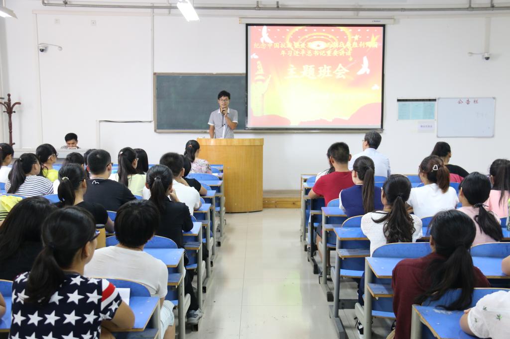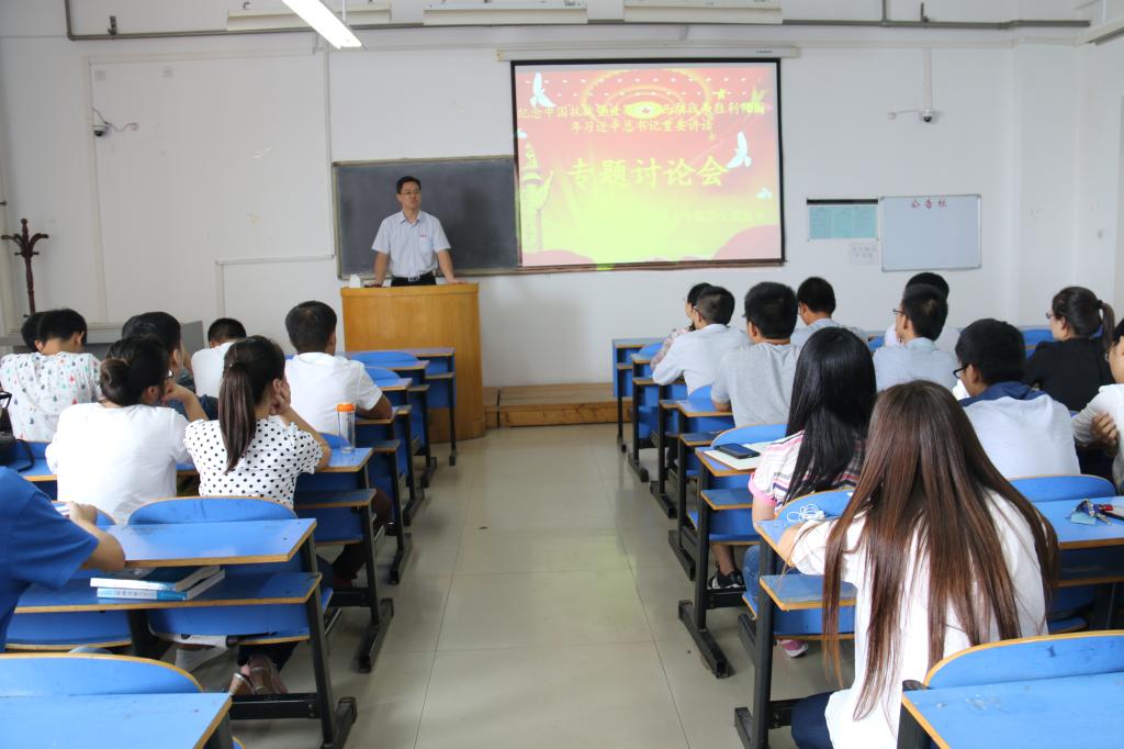 动员会后,学生党总支和各年级党支部开展了专题学习讨论会、主题班会、征文、歌咏比赛等系列活动。2015年9月10日中午13:00,人文学院学生党总支在教学实验大楼A537教室举办了学习习近平总书记在纪念中国人民抗日战争暨世界反法西斯战争胜利70周年大会上的讲话专题学习讨论会。党委副书记庞亚宾、全体辅导员及各班党员参加了此次专题讨论会。会上,全体党员首先认真学习了习近平总书记重要讲话精神,庞亚宾副书记向广大学生党员进一步介绍了抗战的史实及我国当前面临的国内外形势,希望广大学生党员认真学习抗战精神,牢记历史使命,以自己的实际行动践行习近平总书记提出的“四个全面”战略布局。最后,总支各支部学生党员踊跃发言,畅谈了自己的学习感悟和体会。通过这次专题学习讨论会,激发了广大学子的爱国、报国热情,起到了良好的效果。与此同时,人文学院各年级、各班学习习近平总书记重要讲话精神主题班会在全院全面展开,人文学院各位领导、辅导员、班主任积极参加。征文、歌咏比赛等活动也将按计划扎实开展。