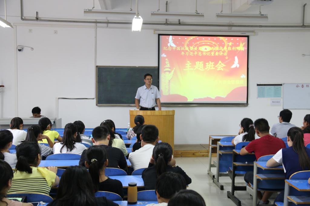 2015年9月8日,在学生党总支、各支部专题学习动员会上,人文学院党委书记王剑锋带领全体辅导员、学生党支部党员骨干认真学习了习近平总书记重要讲话内容。王剑锋书记讲到,中国人民抗日战争的胜利是我们全民族共同的记忆,抗战精神是我们前进中不竭的精神动力,我们要铭记历史,铭记先烈。他说,要以此次学习活动为契机,让同学们深入了解抗战历史,引导和激励广大青年学生牢记使命、刻苦学习,培养高尚的爱国情怀和团结奋进的精神面貌。动员会对此次系列学习活动进行了具体部署。