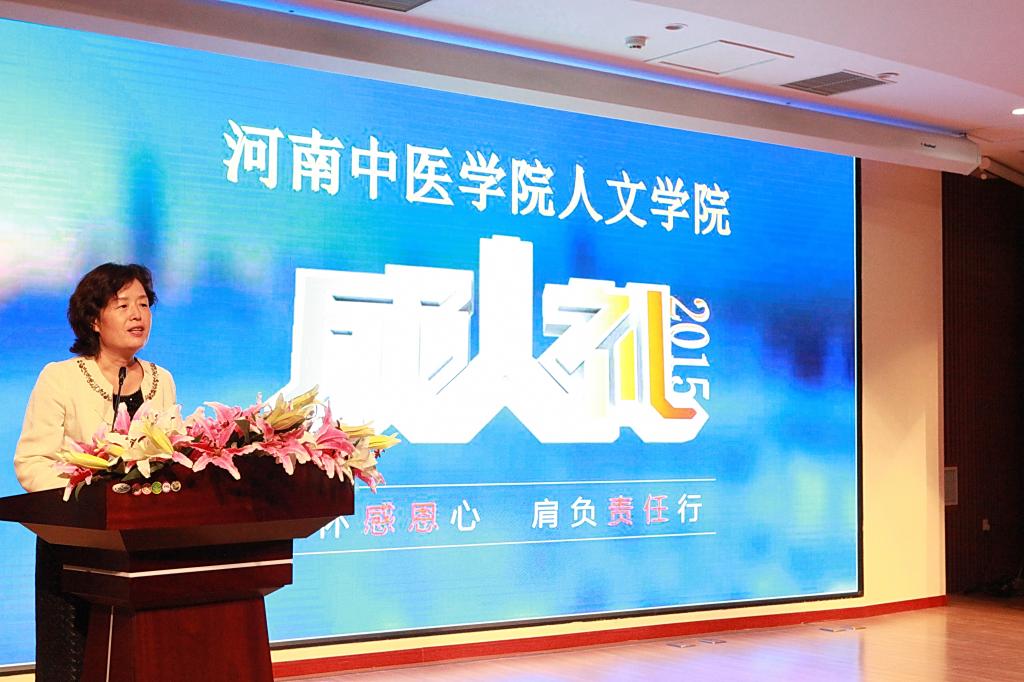 2015年9月30日上午,人文学院在新校区图书馆第一报告厅隆重举行了以“心怀感恩心 肩负责任行”为主题的2015级新生成人礼。这次活动得到了郑玉玲校长、张丽霞副书记的悉心指导。张丽霞副书记出席仪式。校团委书记郭婧、学工部副部长李俊芝、人文学院领导班子全体成员、教师代表、家长代表等参加了此次活动。党委副书记张丽霞在仪式上发表了热情洋溢的讲话。她说,新生成人礼是青年大学生成为社会正式公民所接受的第一课,希望同学们要做到自强、自爱、感恩、担当、宽容,以诚心对他人,以孝心对父母,以热心对社会,以忠心对国家,在人生新的征途上努力拼搏,健康成长。随后,人文学院院长张丽青教授和新生家长代表分别做了发言。仪式中,20名新生代表逐个上台喊出了自己的梦想和愿望,他们以铿锵有力声音表达了必将不负众望、努力进取的决心。在主持人的带领下,2015级全体新生举起右手,进行了庄严宣誓。通过举行成人礼,唤起了大学生的责任感,从思想意识上真正做好了成人的准备。