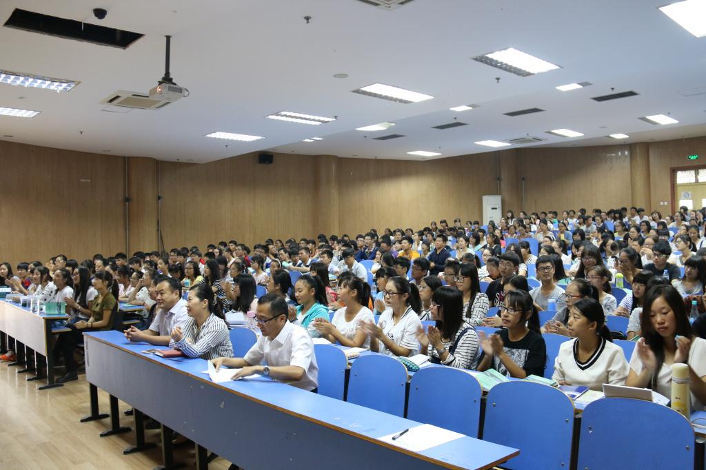 2015年9月29日下午,思政部刘金鸽教授受邀在教学实验大楼A634为全体新生做了题为《岸阔潮平扬帆时》的精彩报告,她用亲身经历和一个个励志的故事教育同学们要爱国爱校、尊敬师长、感恩社会、关爱他人,做到志存高远、厚德博学,勇敢肩负起时代和国家赋予的重任,活出不一样的精彩人生。