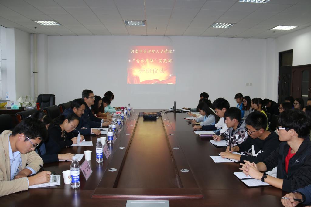 2015年10月22日下午四点,人文学院首期“青衿年华”实践班开班仪式在教学实验大楼七楼中医文化传播中心举行。人文学院党委书记王剑锋、副书记庞亚宾、全体辅导员及首期“青衿年华”实践班的20名学员共同参加了本次开班仪式。
