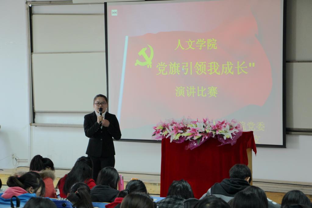 2015年11月13日中午,由人文学院党委举办的“党旗引领我成长”演讲比赛在教学楼A区4楼阶教举行,人文学院党委副书记庞亚宾、人文学院全体辅导员到场参加并担任本次比赛的评委,人文学院各年级党员代表及低年级的入党积极分子代表到场参加。