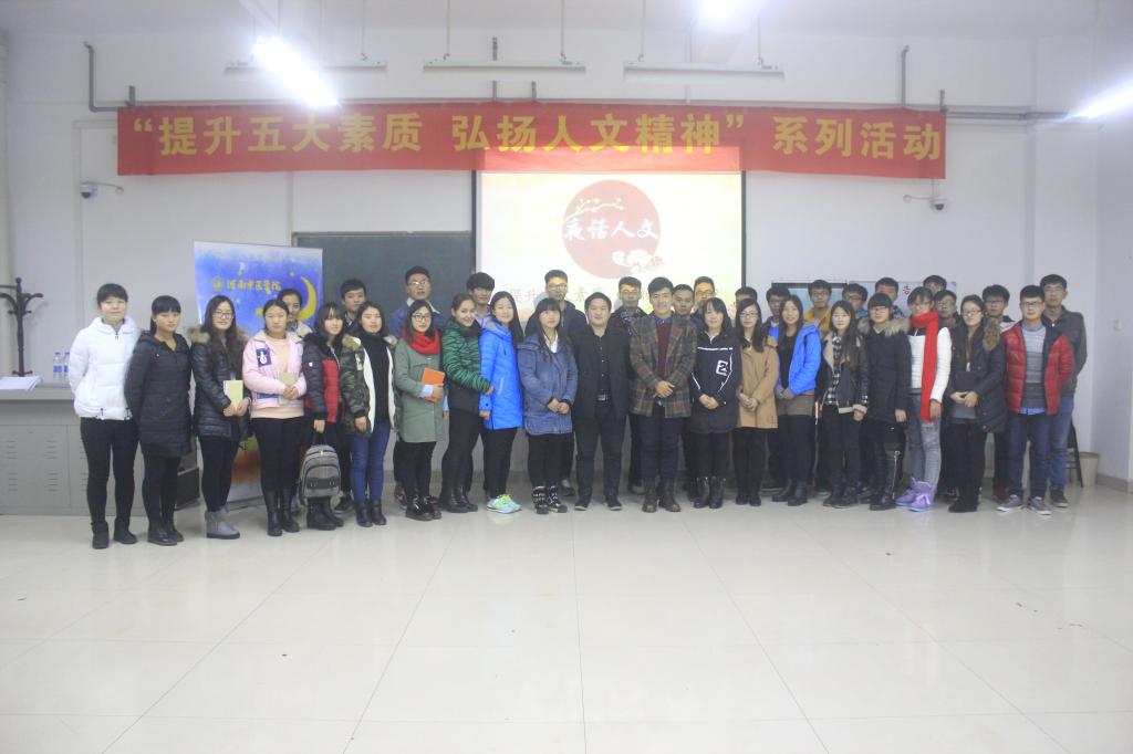 为了响应院系“提升五大素质,弘扬人文精神”的号召,让广大学生进一步了解我校的发展历程,2015年12月10日晚人文学院分团委邀请校广播站站长金治臣同学在教学楼A529举办了一次别开生面的“夜话人文”故事会。