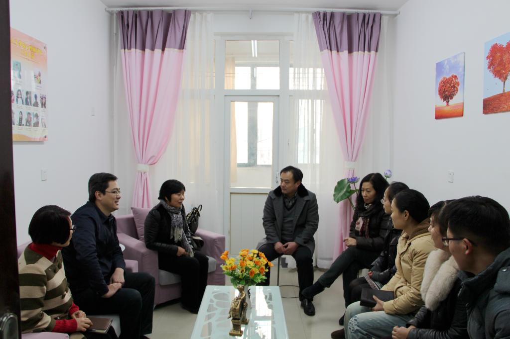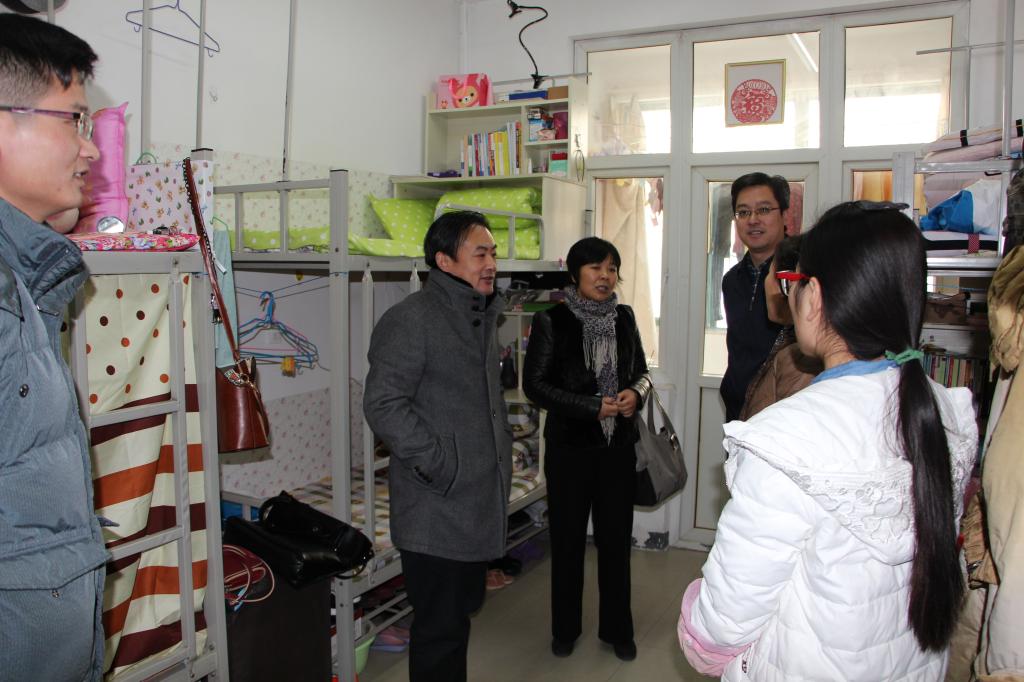 为落实我校《“三严三实”专题民主生活会实施方案》相关要求,进一步深入开展“三严三实”专题教育, 持续开展“四个走进”,2015年12月14日上午,人文学院党委书记王剑锋、院长张丽青、党委副书记庞亚宾、副院长王孺来到4号宿舍楼学工办看望辅导员并召开座谈会,了解安全稳定工作情况,征求意见建议。随后走访了学生宿舍。