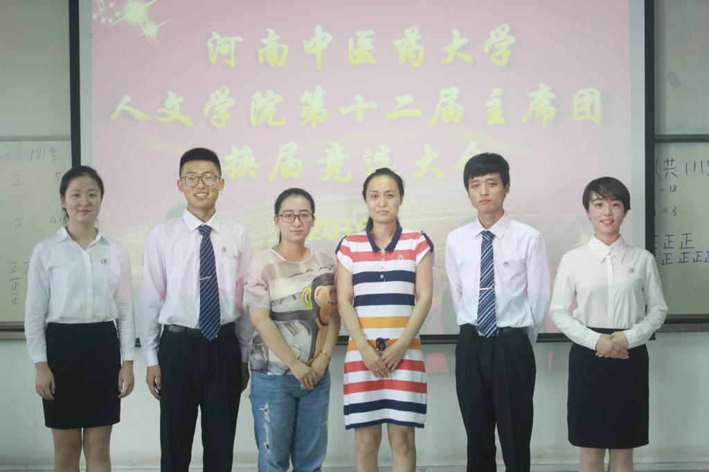 人文学院第十二届学生会换届竞选大会分为主席团竞选和部长、副部长竞选两场。2016年6月21日中午,人文学院第十二届主席团换届竞选大会在教学楼五楼阶教举行,出席本次大会的领导有人文学院党委副书记庞亚宾、分团委书记时慧老师、学工办主任刘欣欣老师、分团委副书记许菲斐老师,辅导员和祎鸣老师、龚博老师。同时学生会成员以及14级、15级班级代表也参加了此次大会。6月22日中午,部长、副部长竞选大会在教学楼三楼多功能厅举行。