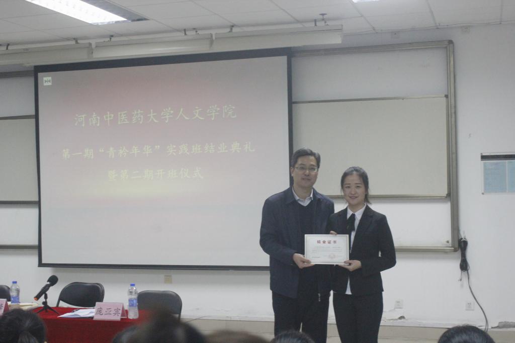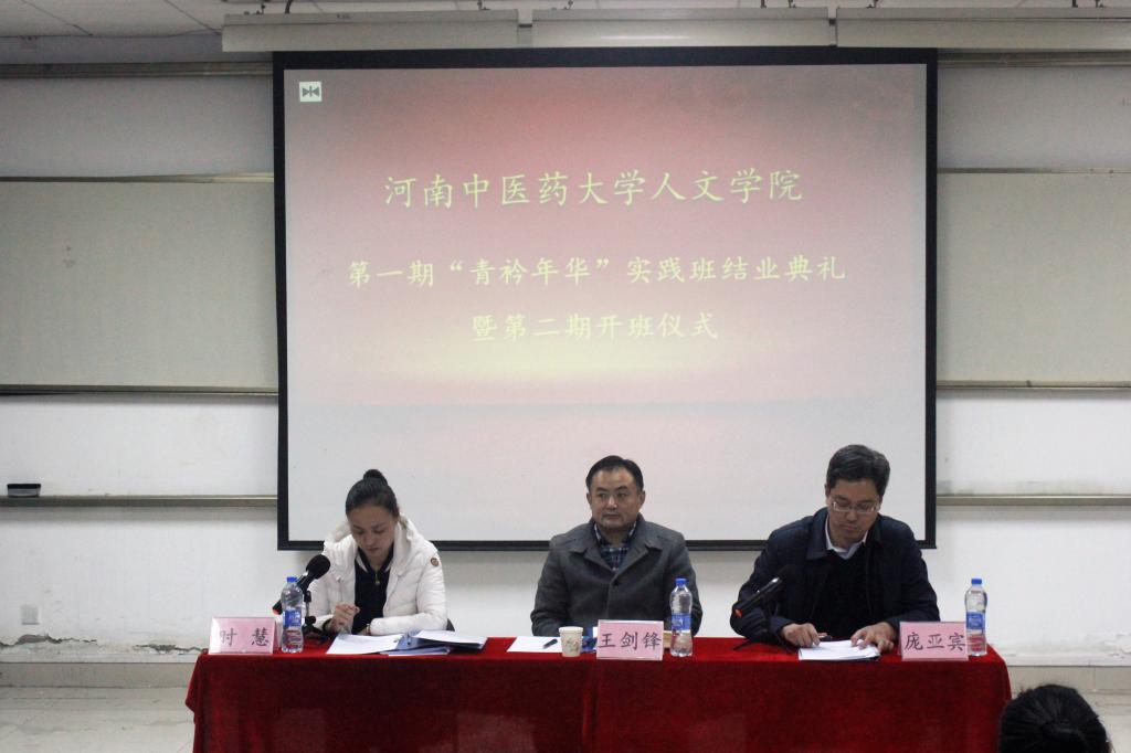活动在分团委书记时慧的精彩主持下正式开始。首先,第一期实践班学生代表张青青发言,她表示“青衿年华”实践班锻炼了自己的实践能力,提升了个人的综合素质,平实质朴的话语表达了对学院领导的感激之情。接着,由王剑锋书记和庞亚宾书记为第一期“青衿年华”实践班毕业学员颁发荣誉证书。然后,实践班第二期新学生代表发言,慷慨激昂的文字陈述着他对未来的目标和追求,他表示能成为实践班的学员是一种荣耀,他将不辜负学院领导的信任和期望,努力锻炼自己,力争成为人文的骄傲。