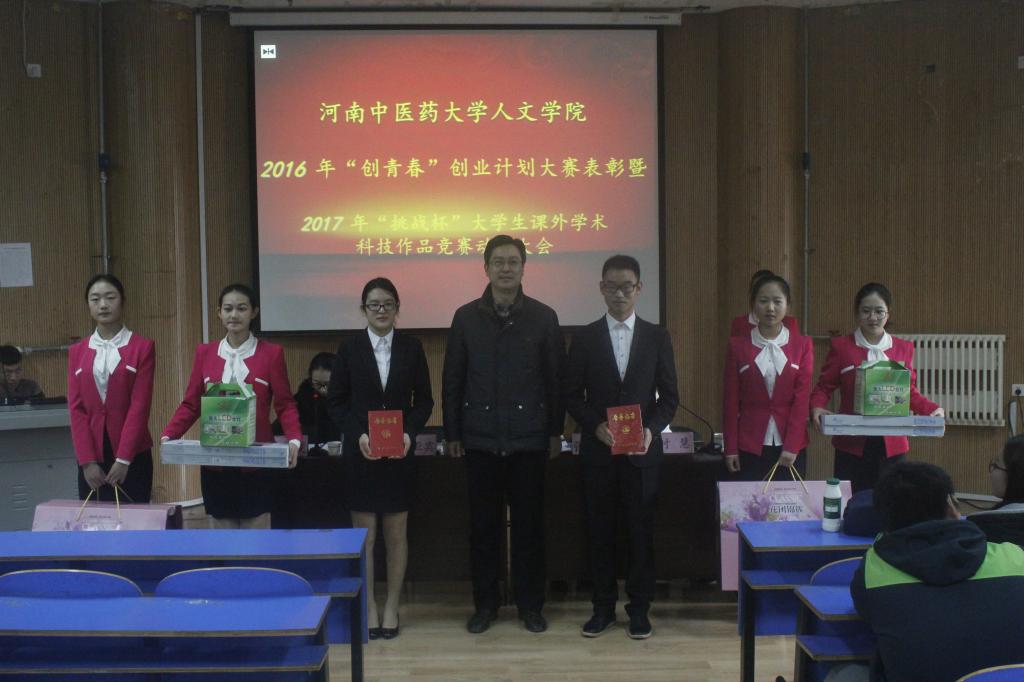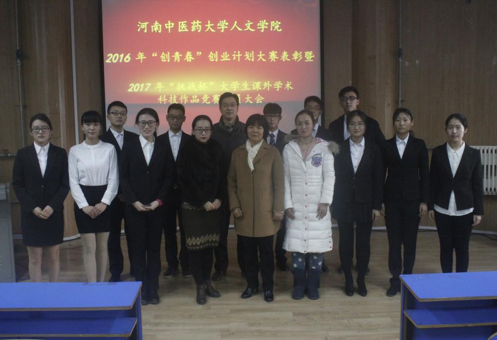 2016年12月14日,人文学院2016年"创青春"创业计划大赛表彰暨2017年“挑战杯”大学生课外学术科技作品竞赛动员大会在教学楼五楼多功能厅成功举行。出席会议的领导有人文学院院长张丽青、党委副书记庞亚宾、分团委书记时慧、分团委副书记许菲斐,参加此次会议的还有学生代表和各班学生代表近300名,会议由分团委书记时慧主持。