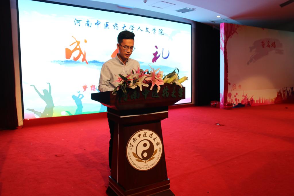 仪式上,庞亚宾副书记代表人文学院全体师生向2017级新同学表示衷心的欢迎,同时也对同学们提出了殷切期望:一是希望同学们跨入大学殿堂要常怀感恩的心,感恩社会、感恩父母、感恩老师、感恩同学;二是希望同学们乐观向上、热爱生活,爱他人的同时也爱自己;三是希望同学们志存高远、脚踏实地,积极进取、勇往直前,努力实现报国梦想。最后,庞书记希望2017级新生同学们不忘初心、勇于担当,在成长的道路上披荆斩棘,实现一次又一次的跨越。新生家长用饱含深情的话语表达了他们对新生的祝福,她希望同学们在今后的人生路上能自立自强、永不言弃,拥有一个精彩的大学生活和有价值的人生!2014级学生党员赵志涛代表在校生代表发言,对学弟学妹即将全面开始的大学生活给予了中肯的指导和建议。
