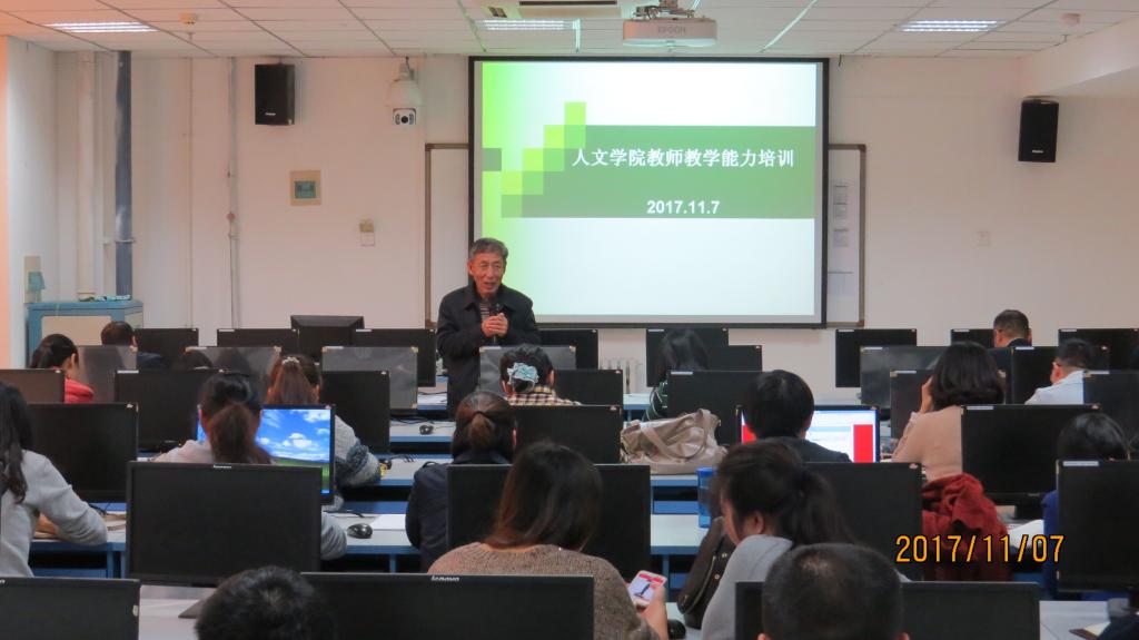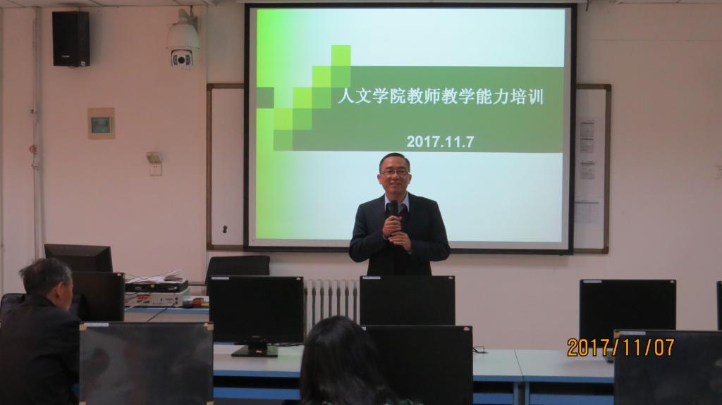 为进一步促进广大教师更新教育理念,提高教学设计水平、提升现场教学技巧和能力,2017年11月7日下午,人文学院在BS502举行教师教学能力培训专题会,邀请人文学院教学督导组王庆宪、贾成祥教授做专题讲座。人文学院领导班子成员、审核评估期间任课教师参加培训,讲座由人文学院副院长段晓鹏主持。