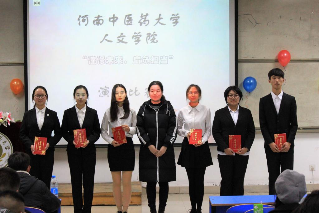 经过激烈的角逐,2017级健康保险班的韩雨浓拔得头筹,摘得桂冠。最后,由评委嘉宾为获奖的选手颁奖并合影留念。