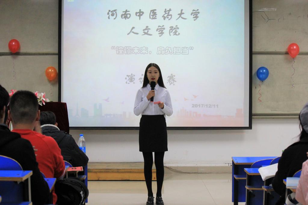 经过半个月的严格选拔,确定13名参赛选手进入了决赛。在主持人的精彩主持下,比赛正式拉开序幕。选手们结合精美的ppt进行“憧憬成长,肩负担当”主题演讲,他们有的幽默诙谐,有的沉熟稳重,有的激情昂扬,为大家带来了一场声音的饕餮盛宴。从幼时到成年,从小家到大家,从历史到时政,选手们向评委与观众一一阐述了自己对成年和担当的理解,他们的从容大气,给大家留下了深刻印象,现场气氛热烈,掌声不断。