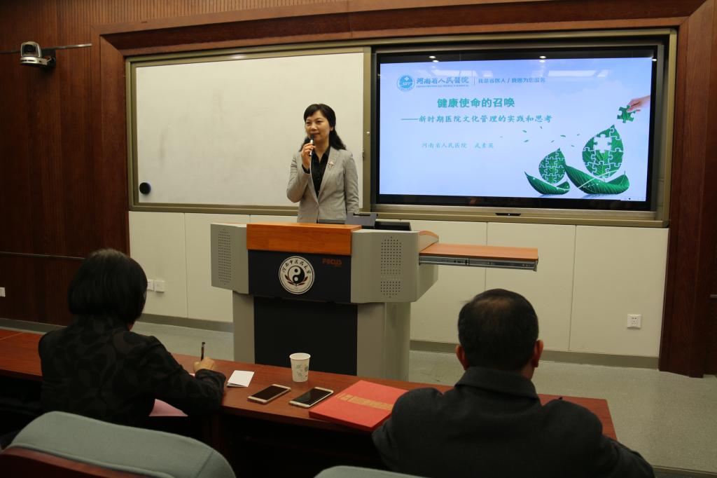聘任仪式结束后,武素英教授为飞卢小说 师生作了题为“健康使命的召唤——医院文化管理的实践和思考”的学术报告。报告内容包括什么是医院文化管理、医院文化管理的实践、医院文化管理的思考三个方面。武教授认为,面对人民群众对美好生活的需求,面对纷繁复杂的守护健康的使命,打造一所人民满意的医院,弘扬和发展内外兼修、形神兼备、兼收并蓄的医院文化,必须要有文化管理。武教授详细介绍了省人民医院在文化管理方面的思路、举措、特色做法和取得的成效。武教授认为,做好医院文化管理,要树立全局观念,统筹设计推进;要契合行业特点,突出职业精神;要持续传承创新,凝聚文化理念;要突出典型示范,引领行业正气;要强化载体运用,增强主题互动;要善抓传播规律,塑造品牌形象。武教授的报告内容丰富、系统全面、案例丰富,赢得了在座师生的热烈欢迎。