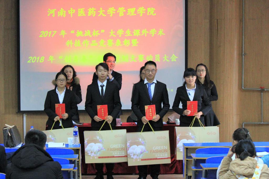 此次大会在时慧老师的主持下进行。会上,许菲斐老师宣读了2017年“挑战杯”大学生课外学术科技作品竞赛校级及院级竞赛获奖作品、个人名单和《关于表彰我院第七届“挑战杯”大学生课外学术科技作品竞赛先进集体和个人的决定》,她对获奖学生代表、获奖优秀团队提出了表扬。紧接着,由领导老师为获奖团队颁奖;表彰仪式结束后,副院长毛海燕宣读了《关于举办我院第七届“创青春”大学生创业大赛的通知》,对我院第七届“创青春”大学生创业大赛作了具体的安排。