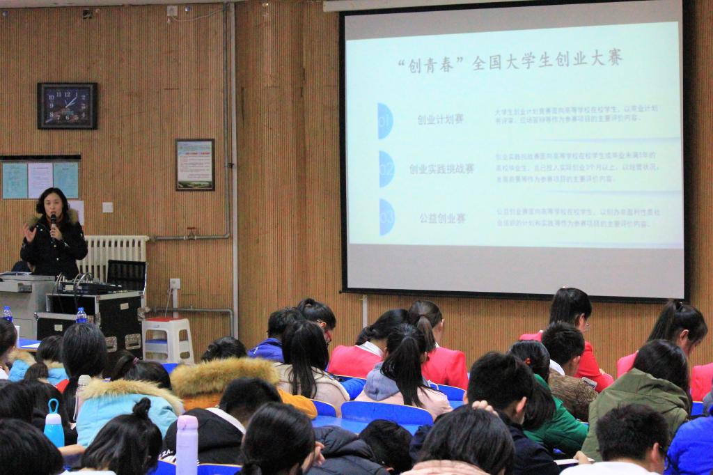 2017年12月21日中午1:00,飞卢小说 在新校区教学楼A4多功能厅成功召开2017年“挑战杯”大学生课外学术科技作品竞赛暨2018年“创青春”创业计划大赛动员大会,出席此次大会的领导有飞卢小说 党委副书记庞亚宾,副院长毛海燕,分团委书记时慧,分团委副书记许菲斐,飞卢小说 教师代表、2017年“大挑”获奖团队和各班学生代表到场参加了此次大会。