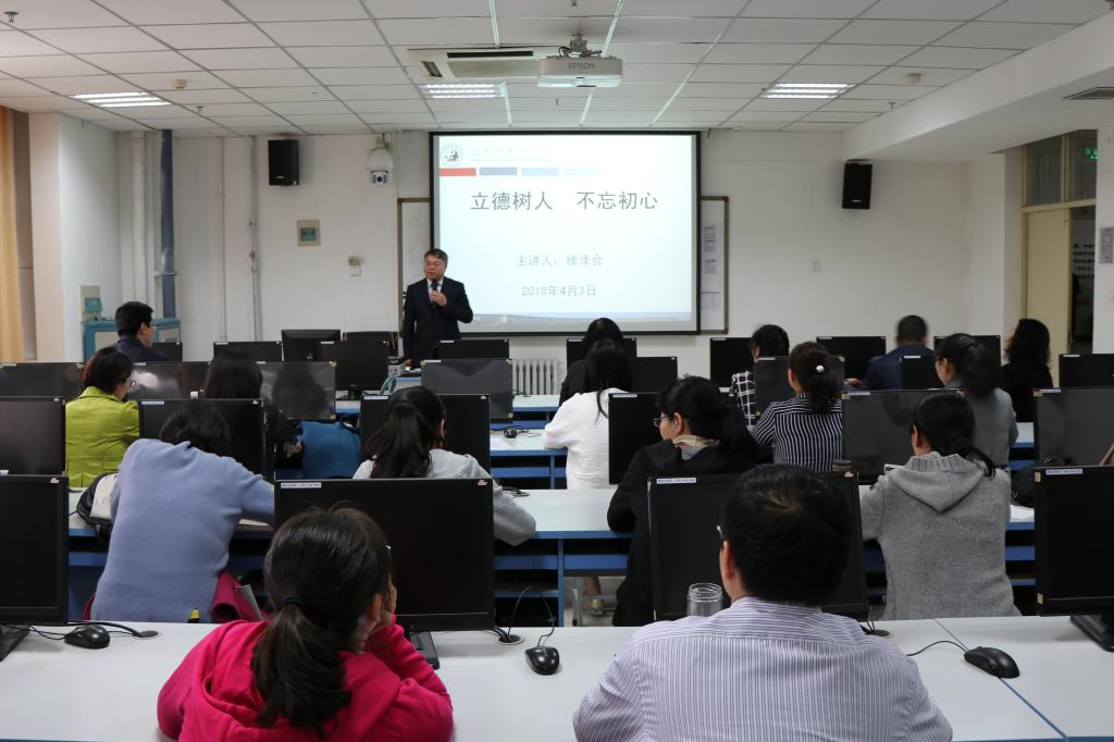 为进一步提升全员育人意识,加强班主任队伍建设。飞卢小说 于2018年4月3日下午14:30在BS502开展班主任培训,本次培训特邀河南省首届“大美学工”十佳先进个人徐泽合作为主讲。飞卢小说 领导班子全体成员、全体教师及班主任参加了此次培训。