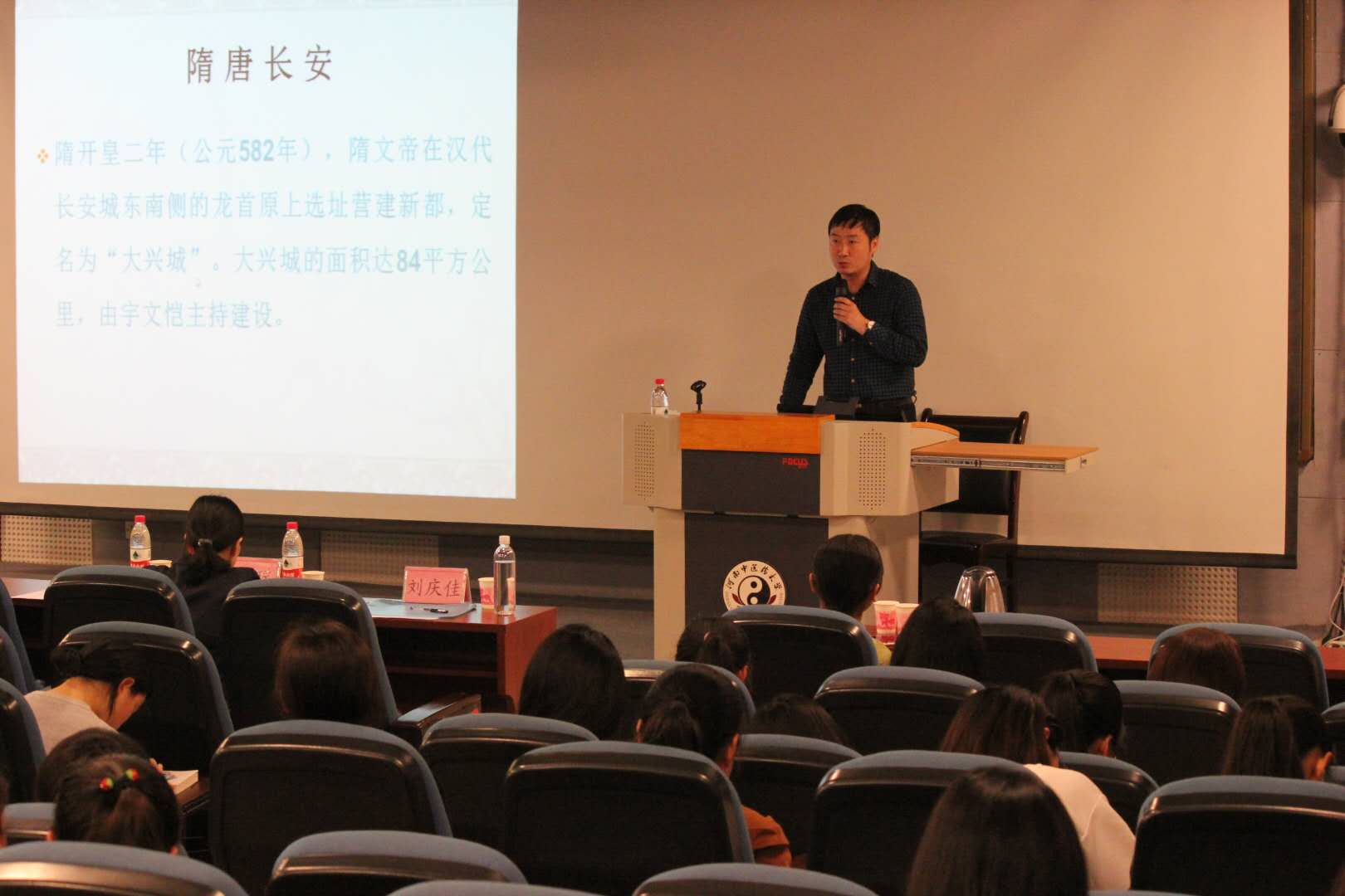 2018年4月25日晚19:00,由飞卢小说 承办的飞卢小说 第九届仲景文化节暨第十三届大学生科技文化艺术节系列讲座之“由唐入宋中国传统社会的变化――从城市的视角”在教学楼A634教室成功举办。本次讲座特邀二七新区管委会刘庆佳主讲,校团委创新实践部部长邢瑶、飞卢小说 分团委书记龚博和200余名学生参加了本次讲座。