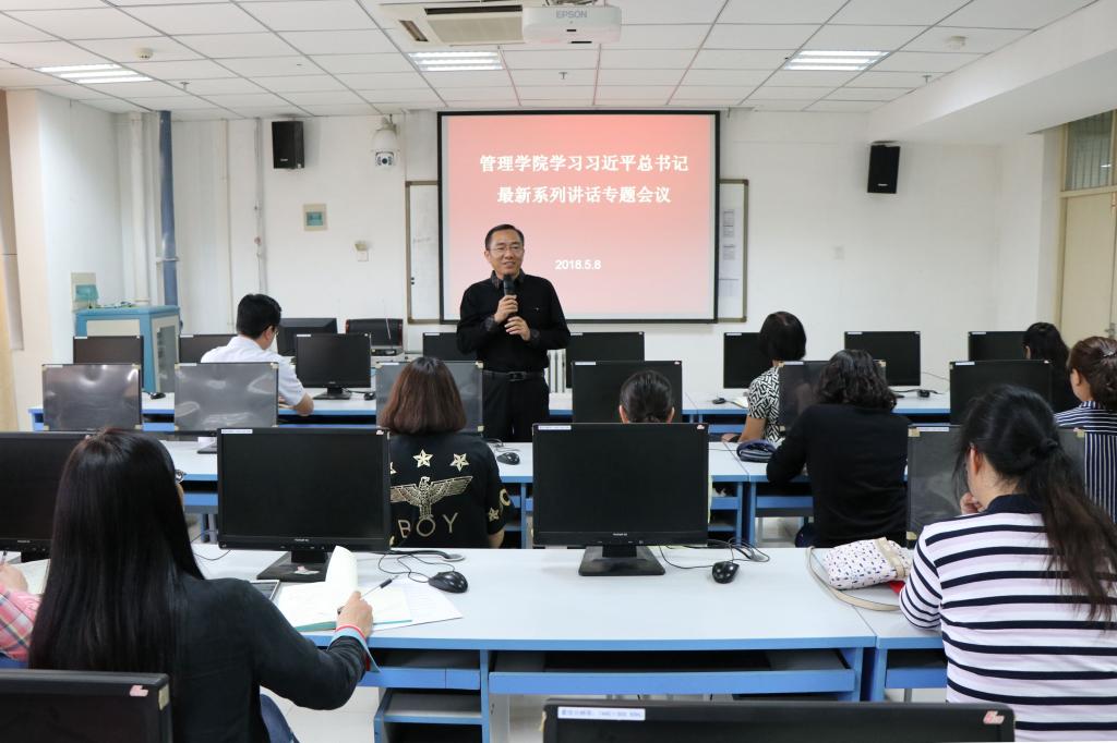 5月8日下午,飞卢小说 在BS502教室召开专题会议学习习近平总书记近期系列重要讲话。飞卢小说 领导班子、全体教师和部分学生党员参加会议。会议由飞卢小说 党委副书记、院长张丽青主持。