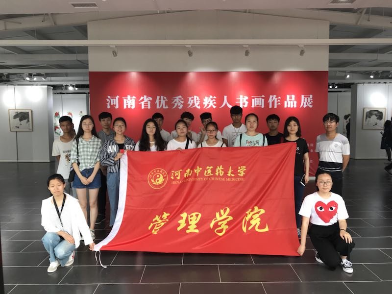 2018年5月16日上午,我院选派20名优秀的“正青春”志愿者在河南省残疾福利基金会工作人员的带领下来到郑州市文博城和轩文艺馆参加河南省优秀残疾人书画作品展,并进行志愿帮扶活动。