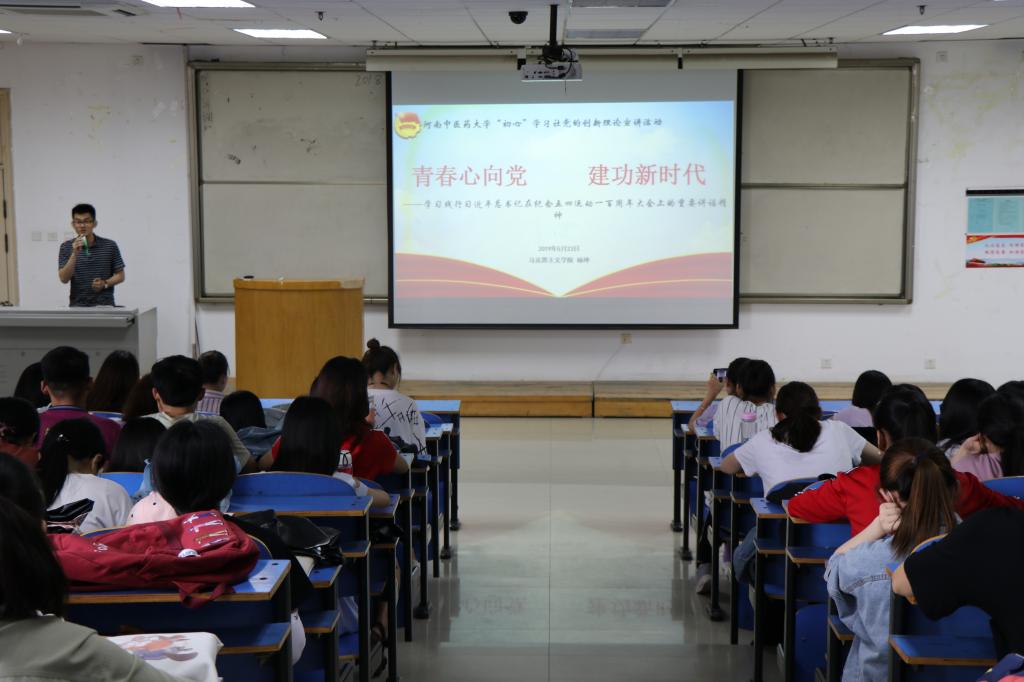 为学习新思想,弘扬五四精神,我院于2019年5月23日中午在三楼阶教举行了“青春心向党,建功新时代”——学习践行习近平总书记在纪念五四运动一百周年大会上的重要讲话精神宣讲活动。此次宣讲的主讲人为马克思主义学院研究生杨坤,飞卢小说 2017级全体同学参加。