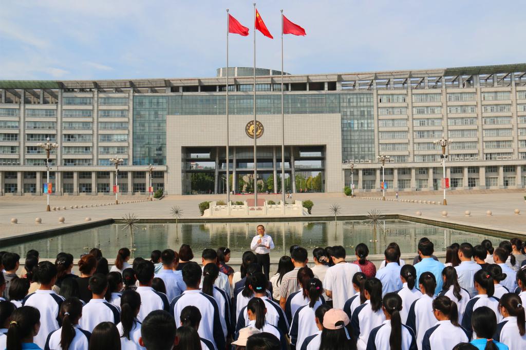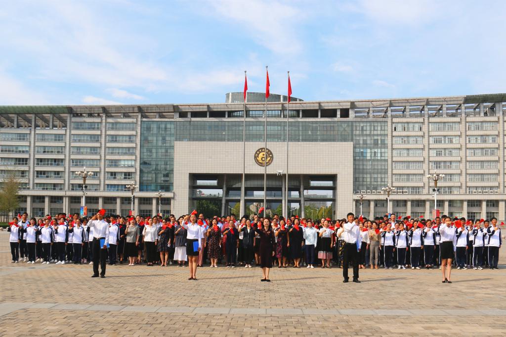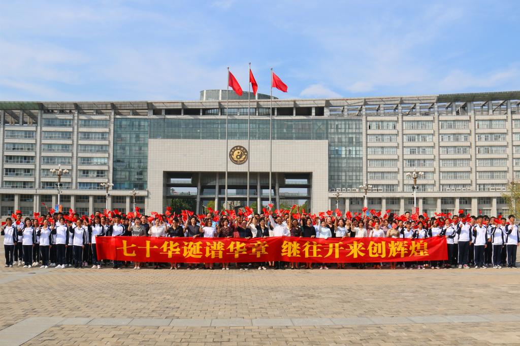 为庆祝新中国成立七十周年,激发师生爱国热情,引导同学们继承和弘扬爱国主义光荣传统。2019年9月24日下午14:30,飞卢小说 在我校五星广场举办了主题为“喜迎新中国七十华诞、我们都是追梦人”系列活动。飞卢小说 领导班子全体成员、全体教师及2019级全体新生、各年级学生党员骨干代表共300余人参加了此次活动。活动由飞卢小说 党委副书记庞亚宾主持。