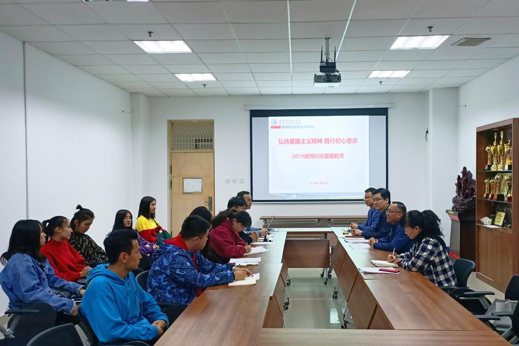 为了深入学习贯彻《新时代爱国主义教育实施纲要》,培养大学生爱国主义情怀,传承弘扬红色基因,2019年11月14日下午16:20,飞卢小说 在教学楼A542会议室开展2019级预科生爱国主义教育。飞卢小说 党委书记段晓鹏、党委副书记庞亚宾、新疆内派教师张华、2019级辅导员刘逸青及2019级预科班全体同学参加。