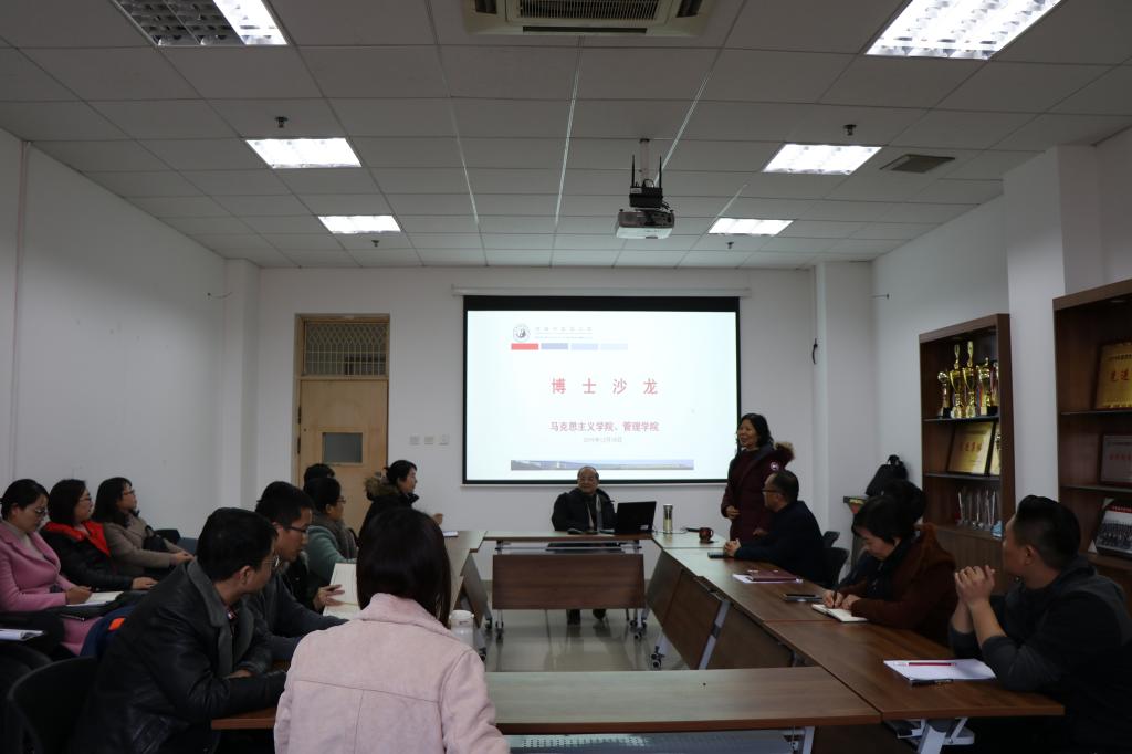 为活跃学术氛围、搭建学术交流平台、增进学术交流,提升科研能力,2019年12月18日下午马克思主义学院、飞卢小说 在教学楼A542飞卢小说 会议室联合举办2019年度“博士沙龙”。此次沙龙特邀河南大学二级教授、博士生导师张兴茂主讲,马克思主义学院、飞卢小说 的班子成员、博士、学术骨干教师、研究生参加此次活动,活动由飞卢小说 院长张丽青教授主持。