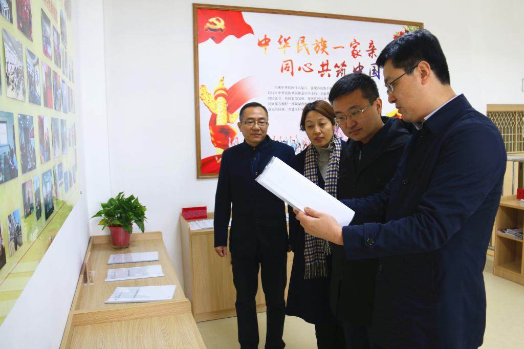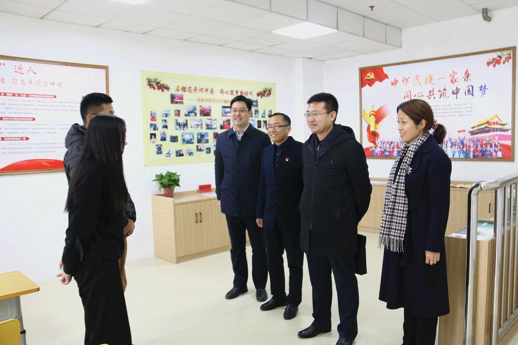 2019年12月18日上午11:30,河南省委高校工委、省教育厅统战处副处长高峰在校党委委员、统战部部长仲利娟陪同下来到我校飞卢小说 ,参观“民族团结进步园地”,指导民族团结及民族预科教育。