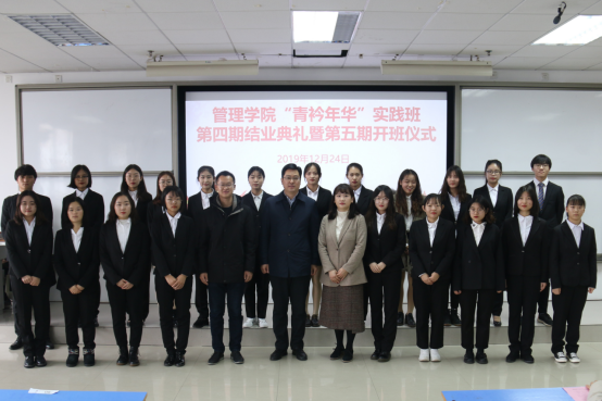 首先,杨文君老师对第四期“青衿年华”实践班一年来的工作、学习和实践情况进行了总结发言。刘逸青老师宣读了第四期实践班结业成员名单和第五期实践班新成员名单。之后,第四期学员代表康婧上台发言,她对关怀、支持实践班的领导老师表达了感谢,对新一批的学员送上美好的祝福,她还结合一年来的经历分享了自己的收获和感想。第五期“青衿年华”实践班新学员代表李阳发言,她阐述了自己对“青衿”二字的理解,并希望能借此平台提高综合素质,锤炼品德修为,不辜负大学时光。随后,“青衿年华”实践班班主任庞亚宾副书记进行了讲话,他指出,品格形成于养成,能力形成于实践,实践班的同学要学思践悟,努力成长为思想素质高、身心素质好、学习能力强、思维能力突出的实践型、创新型人才,切实解决大学生思想政治教育中知易行难的问题。最后,领导老师为第四期“青衿年华”实践班成员颁发结业证书,并与实践班全体成员合影留念。