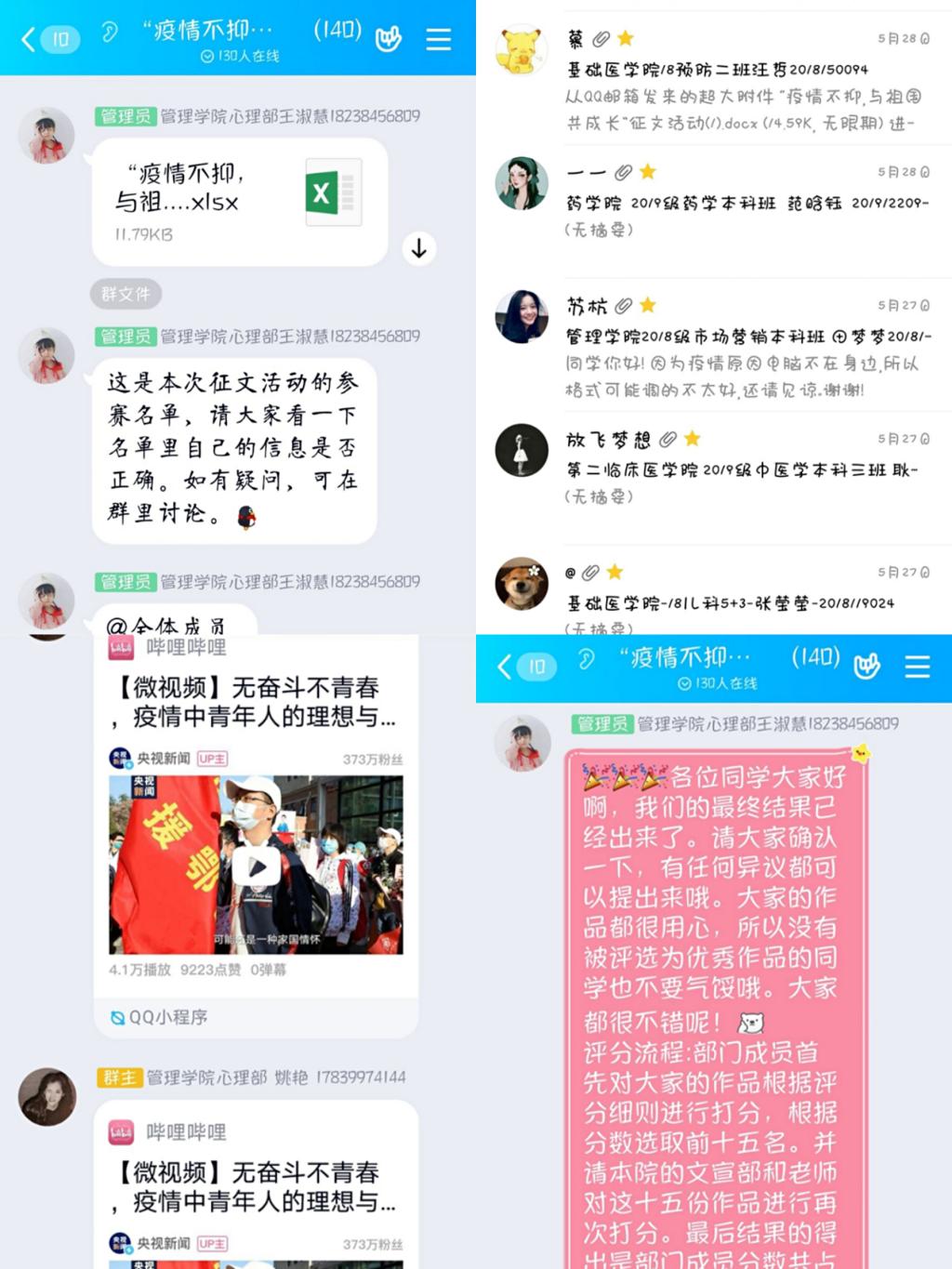 本次征文活动的顺利举行,不仅丰富了我校学生在疫情期间的日常生活,缓解了同学们的焦虑情绪,更激发了同学们的责任意识与爱国热情,进一步加深了对青年担责的认识。(文/朱英格 图/闫明豪 编辑/杨静静)