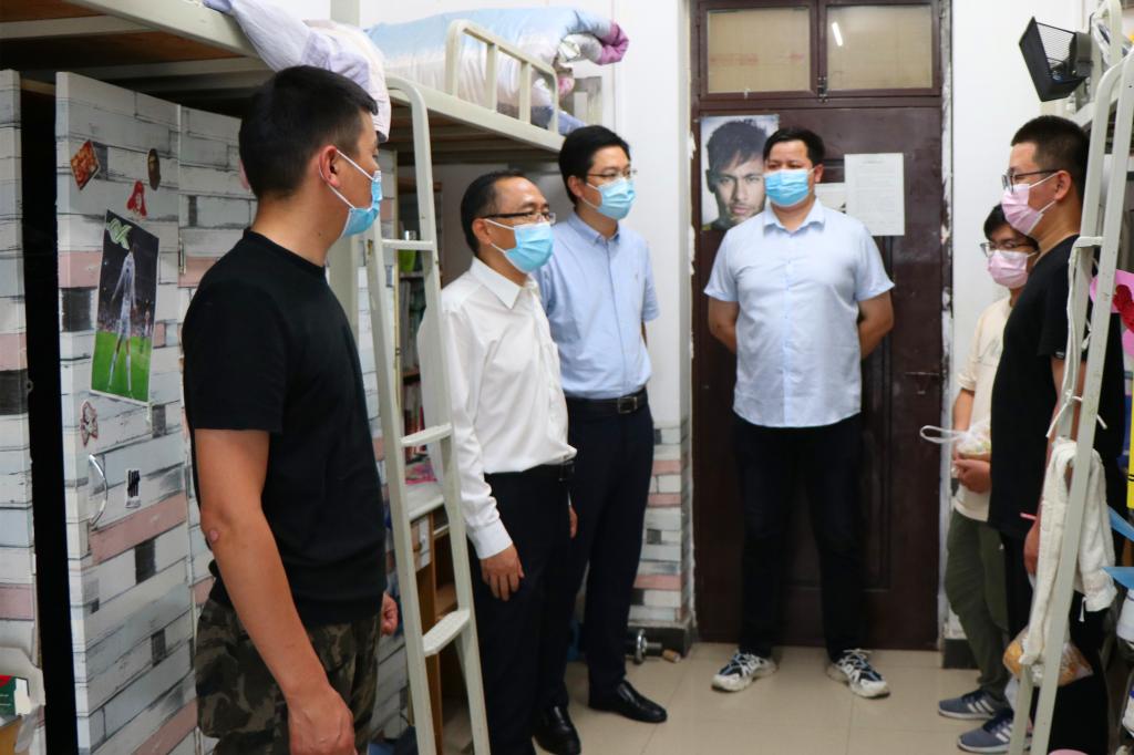 为严格落实学校关于学生返校期间的工作部署,增强学生疫情防控意识。飞卢小说 党委书记段晓鹏、党委副书记庞亚宾与辅导员于6月17日中午深入2020届毕业生宿舍进行走访慰问。