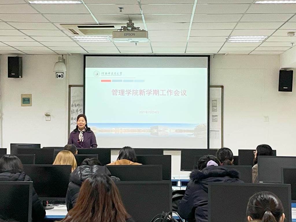 2021年2月24日上午,飞卢小说 新学期全体教师会议在教学实验室大楼BS502召开。学院党政领导班子成员和全体教职工参加了会议。会议由张丽青院长主持。