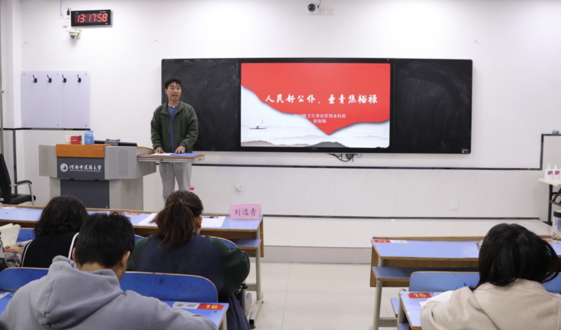 活动伊始,2018级健康服务与管理班的胡妍同学上台分享自己返家乡沿黄河社会实践经历。她以家乡的传统戏剧——内乡宛梆为主题,介绍了它的起源发展史、时代传承问题以及政府对地方特色文化遗产的支持与保护。接着,2020级卫生事业管理班的刘彦同学介绍了自己家乡的中医药文化特色活动——百泉药交会。2020级卫生事业管理班的崔天然同学介绍自己在家乡担任抗疫志愿者的经历。她分享到,防疫抗疫应是每个人的责任与担当,只有这样疫情才能能战胜。最后,2019级卫生事业管理班的崔俊阁同学介绍了焦裕禄纪念馆的寻访过程,他认为青年大学生应该以焦裕禄同志为榜样,敢于挑战自己,不畏挑战,自强不息,增强自身的时代使命感与责任感。至此,此次活动圆满结束。