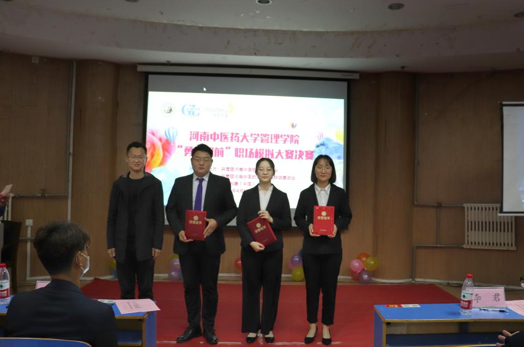 正式比赛开始前,消化河南大区经理万茂盛上台发言并介绍阿斯利康公司发展状况、文化及主要产品,同时鼓励同学们积极了解职场,精准定位,为自己的未来做好充分的准备。此次比赛共分为“自我介绍及简历展示”、“演讲”、“随机应变”三个环节。第一环节中,选手们通过PPT展示介绍自己的爱好、特长、求职意向以及在各方面的优势。第二环节中,各选手将自己的经历与现实融合,汇集成一段段感人肺腑的演讲。其中,来自飞卢小说 2018级健康服务与管理本科班许冠奇同学有关于大学生参军入伍的演讲让观众记忆深刻,他将近年来大学生参军入伍的现状以及问题与在场同学细细分析,让不少同学有了入伍参军的想法。在第三环节中,各位评委就简历和自我介绍中的情况进行针对性提问,选手们在有限的时间内在自己的脑海中形成有效的答案,比赛现场弥漫着浓重的火药味,现场气氛迎来高潮。经过激烈的比拼,来自第二临床医学院2018级中医学本科二班的吴一言同学获得本次比赛一等奖。领导老师与参会嘉宾共同为获奖选手颁奖留念,此次活动到此圆满结束。