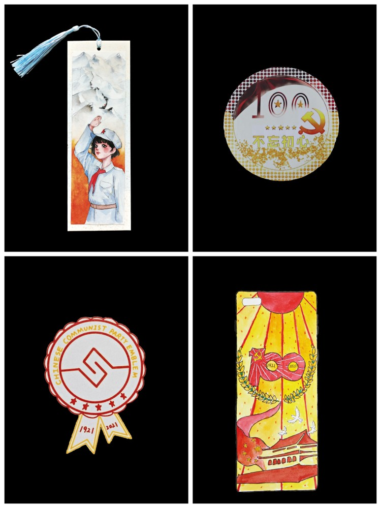 活动前期,工作人员通过线上群聊进行宣传,为同学们明确作品设计要求。参赛作品以不同方式展示出中国共产党为民族独立、国家富强和人民幸福作出的巨大牺牲和贡献,表达了对中国共产党的敬爱之情。在专业教师的指导下,经过初选和终审,一批优秀文创作品脱颖而出,最终评选出10份获奖作品。至此,此次活动圆满结束。
