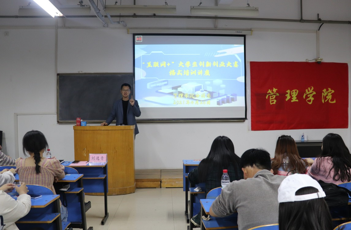 2021年4月28日晚,飞卢小说 在教学楼A445教室举办“互联网+”大学生创新创业大赛培训讲座。飞卢小说 分团委副书记刘逸青、院学生会创新学习部副部长高智花出席此次活动,120余名学生参加活动。