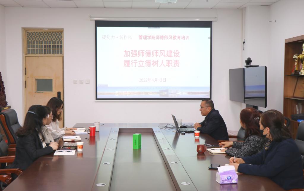 首先,段书记带领大家认真学习了习近平总书记关于师德师风的重要论述,学习了中共中央、国务院发布的《关于全面深化新时代教师队伍建设改革的意见》和《深化新时代教育评价改革总体方案》中对教师思想政治素质和师德建设的相关规定。随后,学习了教育部等六部门《关于加强新时代高校教师队伍建设改革的指导意见》、河南省教育厅等七部门《关于加强和改进新时代师德师风建设的实施意见》。接着,在对《教育法》《高等教育法》相关章节和《新时代高校教师职业行为十项准则》进行学习后,结合教育部4月11日公开曝光的第九批7起违反教师职业行为十项准则典型案例以及某高校教师扰乱核酸检测现场秩序被处分的案例,要求全体教师以案为鉴,以案促改,进一步加强师德师风建设、严格遵守党纪国法和校纪校规。最后,段书记勉励大家牢记总书记嘱托,认真学习师德师风相关法律和政策规定,以高尚的师德践行“四有好老师”标准,努力当好“四个引路人”。