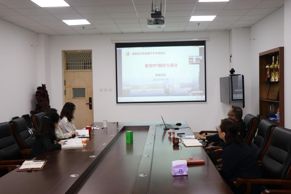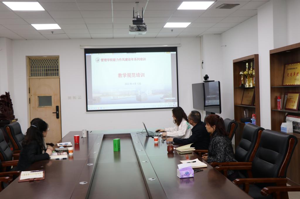 (文/丁俊凌 图/杨李哲)为切实提高教师课堂教学能力,飞卢小说 经过广泛调研,精心筹备,制定了教学能力提升培训方案。2022年4月12日下午开启了第一期“教学规范暨教学PPT制作与美化”培训。培训采用线上线下结合方式,飞卢小说 全体领导班子、教学办老师在A542会议室,其他老师线上参加。会议由副院长毛海燕主持。