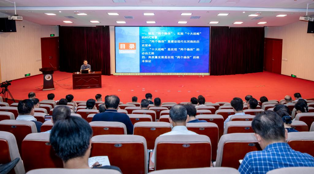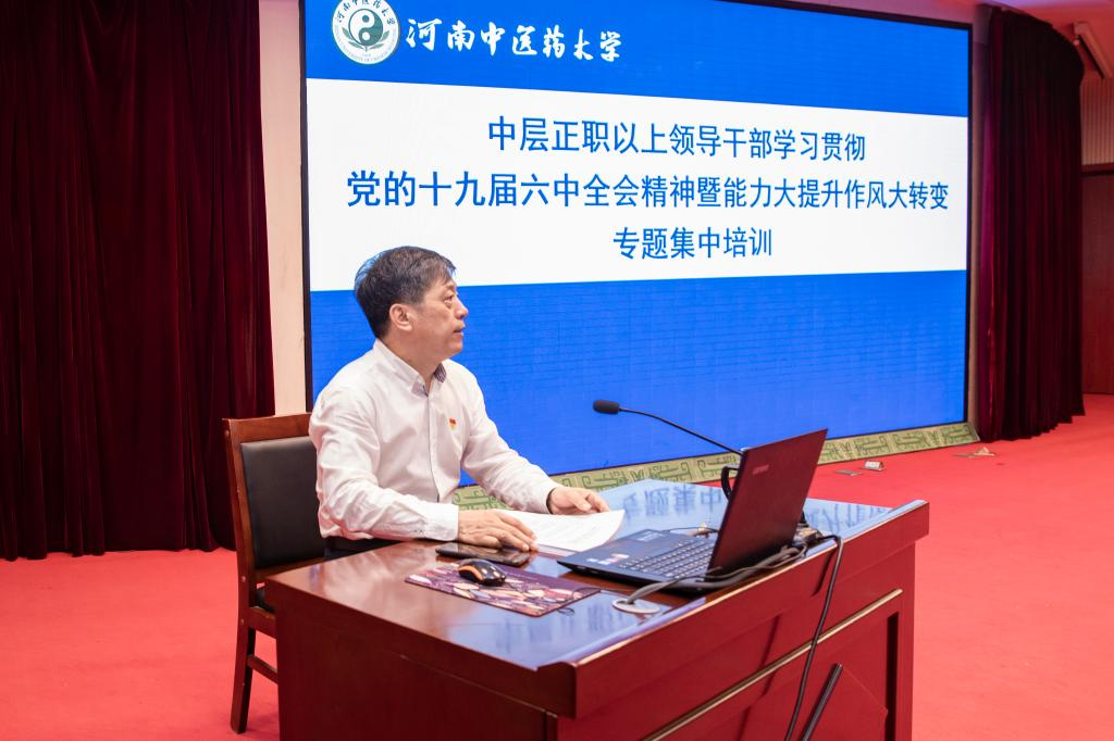 本次培训采取集中学习、分组研讨、专题讲座、线上教学和自主学习等相结合的方式。培训第一讲由学校党委副书记、校长许二平做《深入学习贯彻十九届六中全会精神加强能力作风建设推动高质量发展》专题报告,许二平从“深入学习领悟党的十九届六中全会精神”“中国共产党与中医药的百年传承发展”“提高能力、转变作风、主动担当作为,做新时代优秀干部”三个方面展开讲授,并要求领导干部要“对照‘能力清单’练好基本功”“对照‘问题台账’把好作风关”“对照‘目标蓝图’当好带头人”,以踏实的奋进姿态和扎实的工作成效,谱写学校高质量发展新篇章。培训还邀请了河南省社科院原院长谷建全专题讲授《以“十大战略”为切入点,深入学习领会省十一次党代会精神》,谷建全从时代背景、历史使命以及实现“十大战略”的必由之路和根本保证等方面,深刻揭示了锚定“两个确保”,实施“十大战略”的重要意义和路径安排。